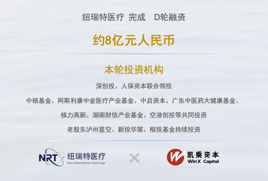 成都纽瑞特医疗科技股份有限公司(以下简称纽瑞特医疗)于近期完成约8亿元人民币D轮融资。本轮融资由深创投、人保资本联合领投,中核基金、阿斯利康中金医疗产业基金、中启资本、广东中医药大健康基金、核力高新、湖南财信产业基金及空港创投多家知名投资公司和金融机构联合出资,老股东泸州星空、新投华策、榕投基金也持续加码,凯乘资本担任牵头财务顾问。