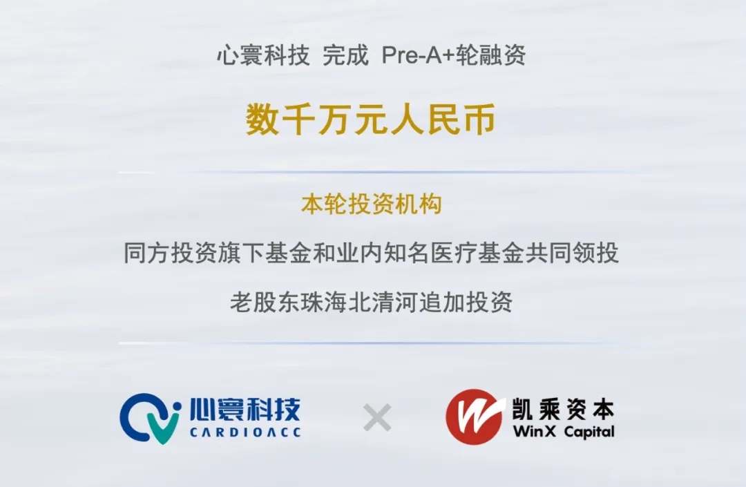 基于扎实的业务进展,心寰科技得到投资机构充分认可,于半年内连续完成两轮数千万人民币融资。继2023年6月获得由鲁信创投领投、珠海北清河跟投的数千万元人民币Pre-A轮融资。新闻链接:心寰科技完成数千万元Pre-A轮融资,致力于成为介入超声影像创新先行者,凯乘资本担任独家财务顾问